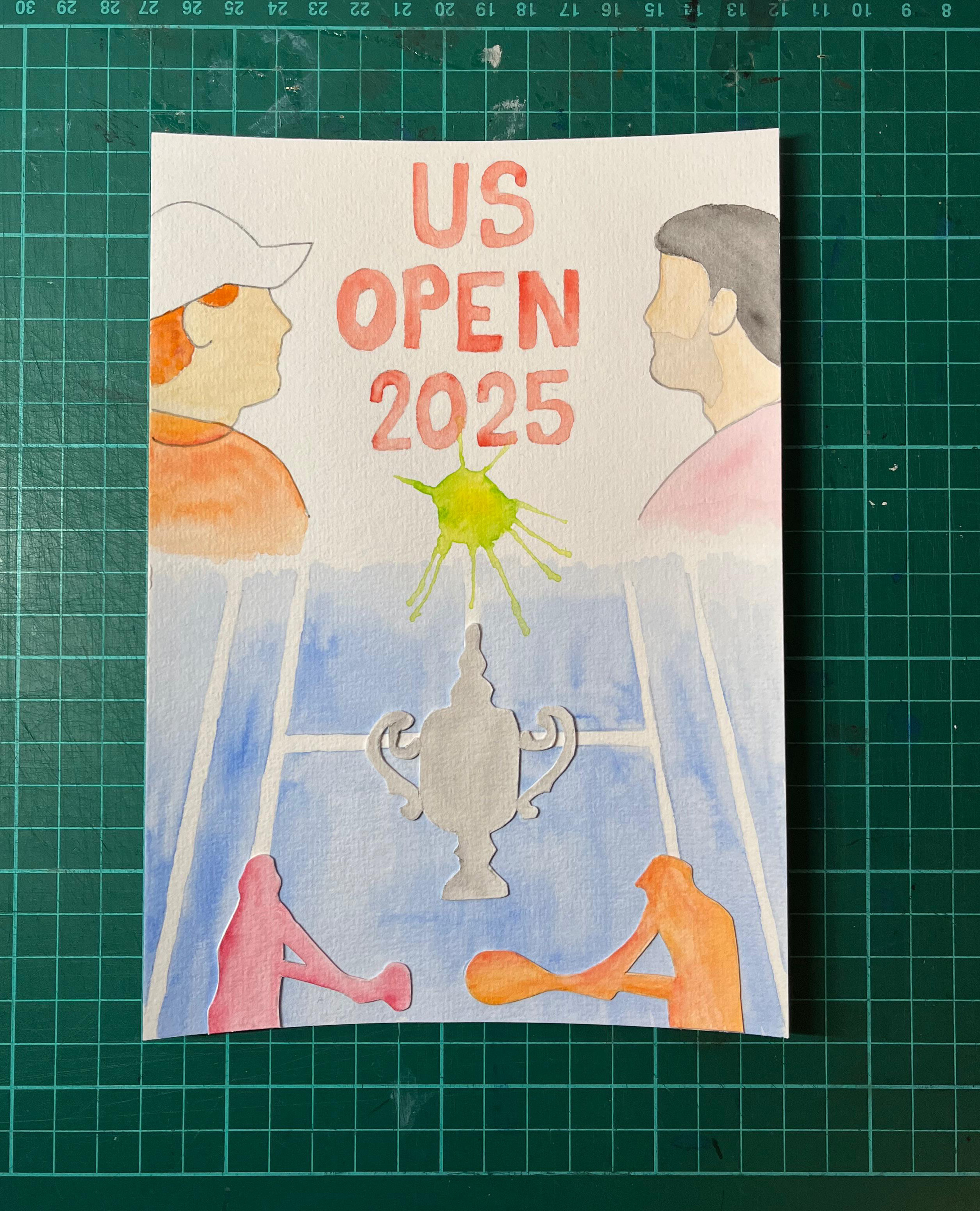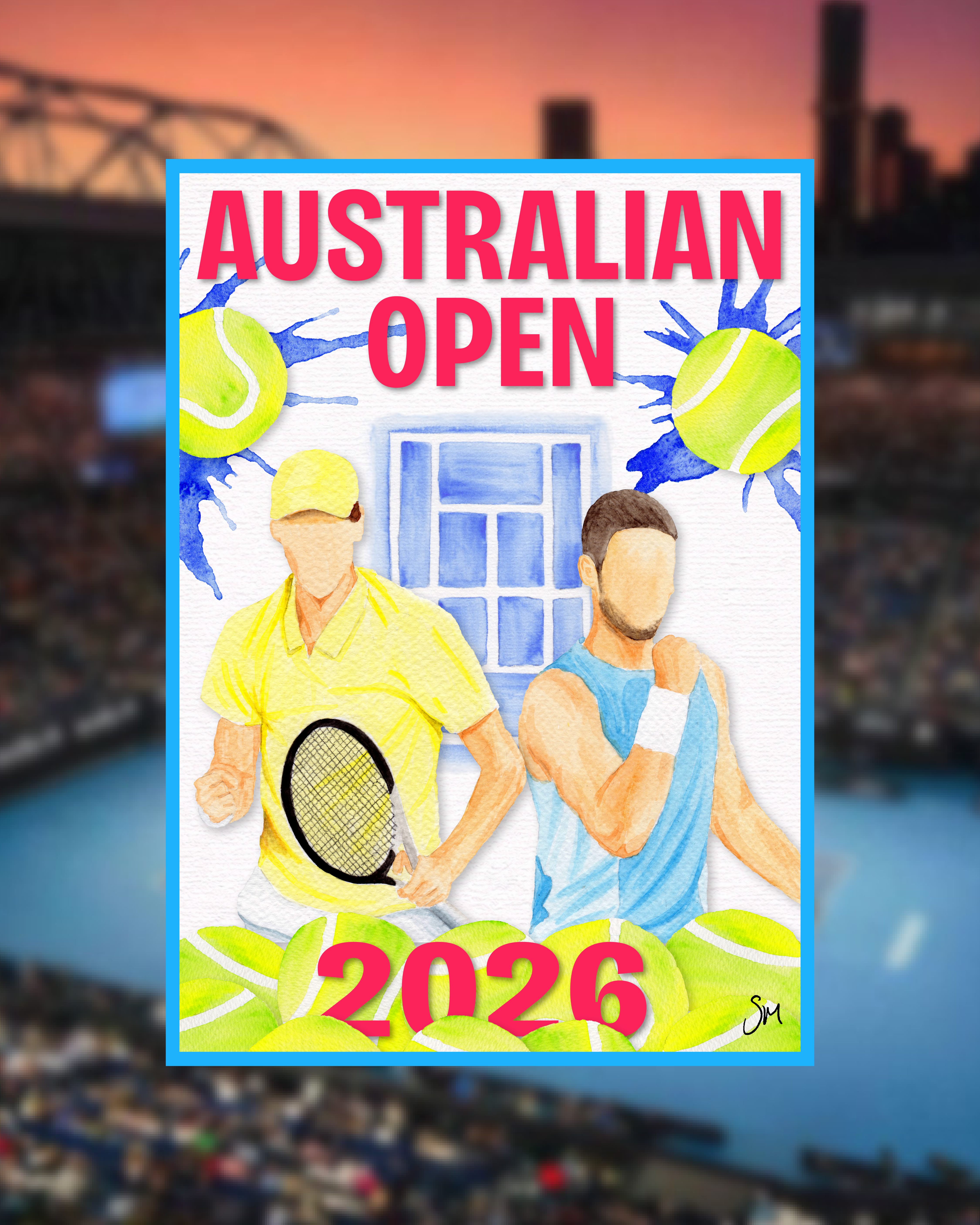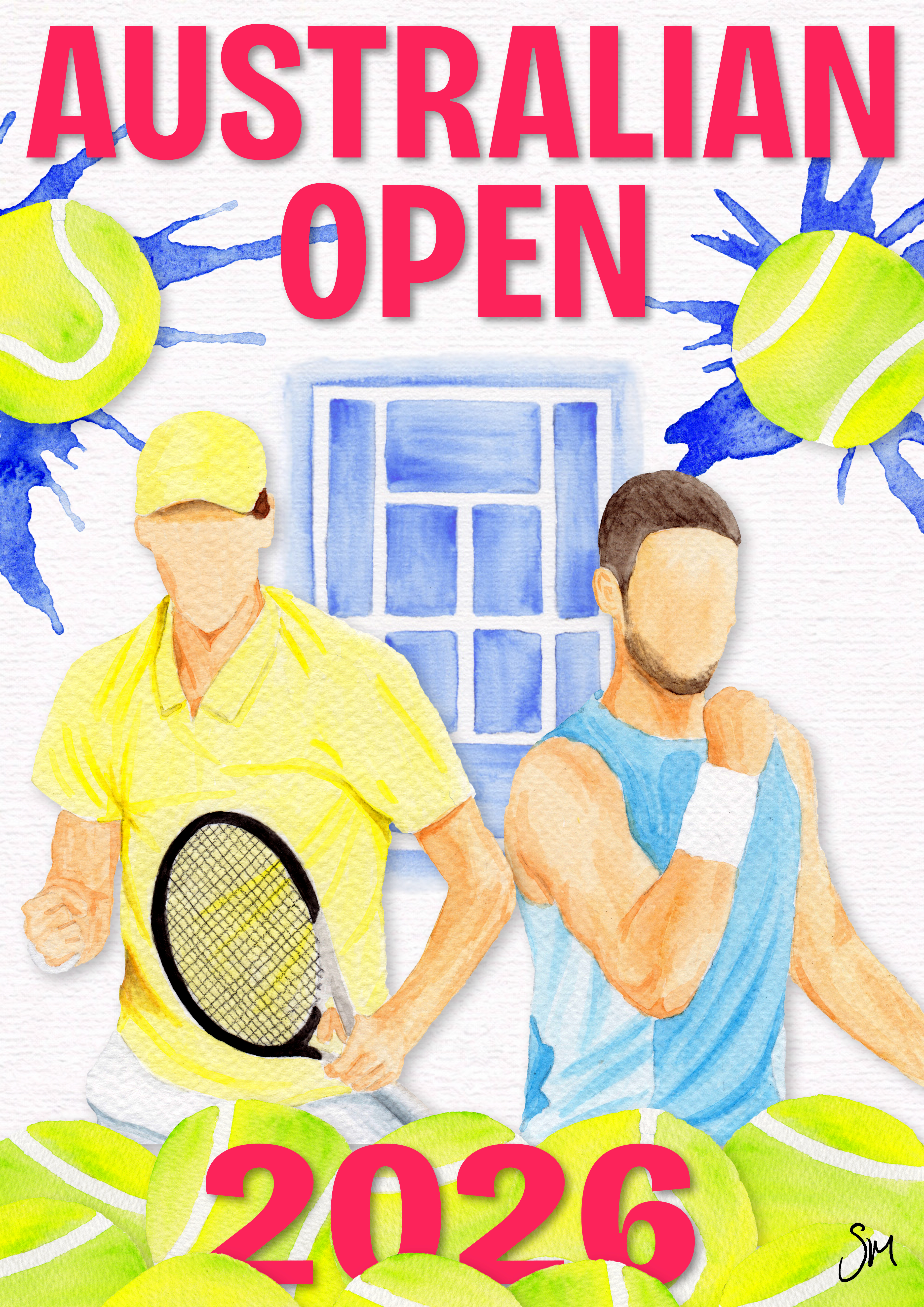 I most recently (January 2026) decided to challenge myself with designing a full poster using watercolour. As the Australian Open was beginning, I took inspiration from the 2025 tournament.