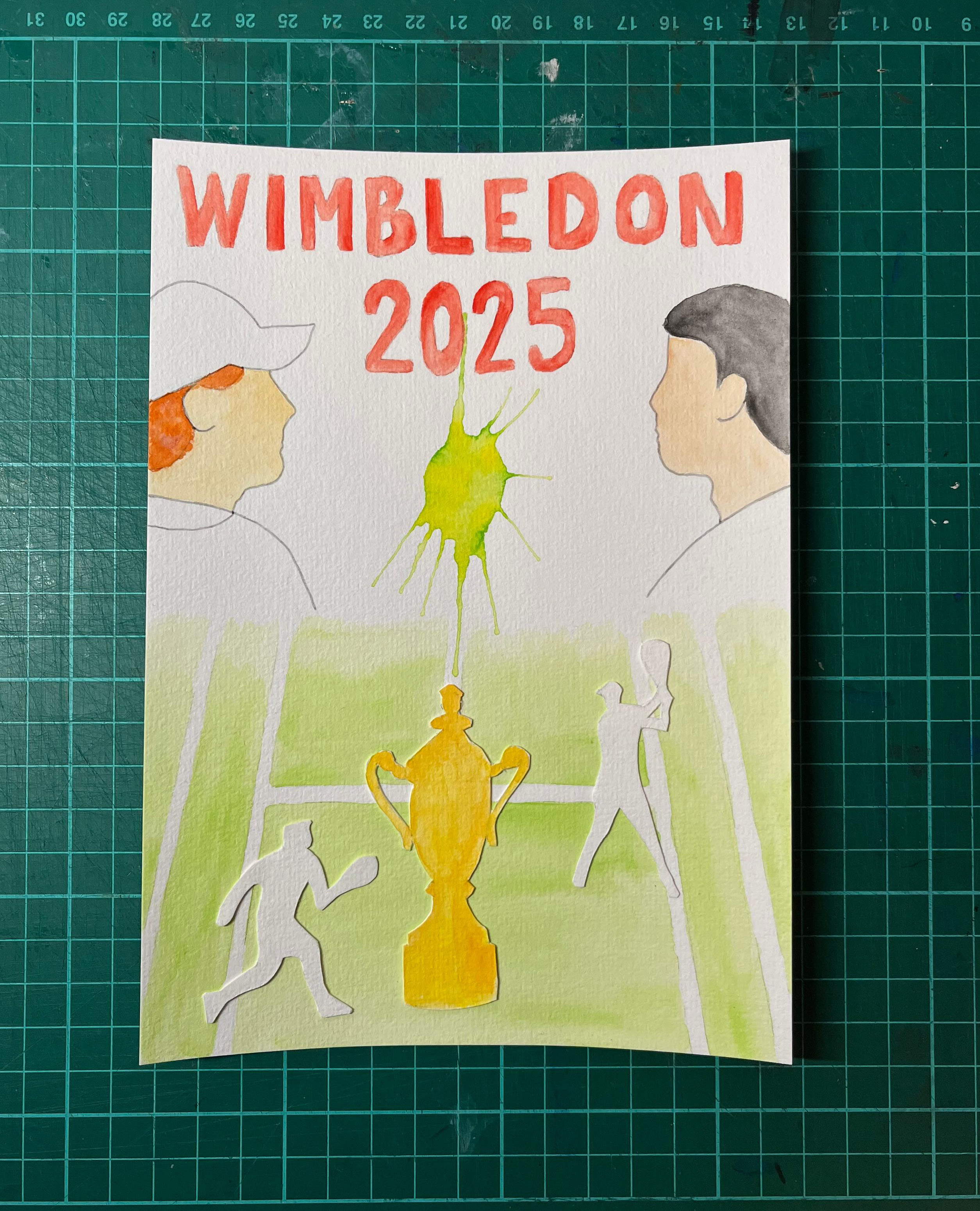 I am a big tennis fan and in 2025 I began creating tennis artwork, for my own enjoyment and also to sell at markets or online. I wanted to try something more physical, especially as graphic design continues to move in a more digital direction. I love the presence that art can have in the tennis world, e.g. the Grand Slams choosing artists to design their posters each year, and I want to be part of that some day.